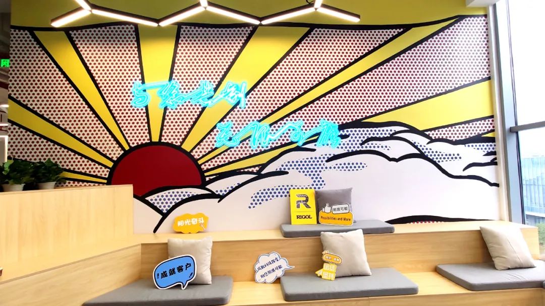 R标”色彩与背景墙颜色交相辉映,不仅充满浓浓的科技风,也蕴含着RIGOL浓厚的企业文化。